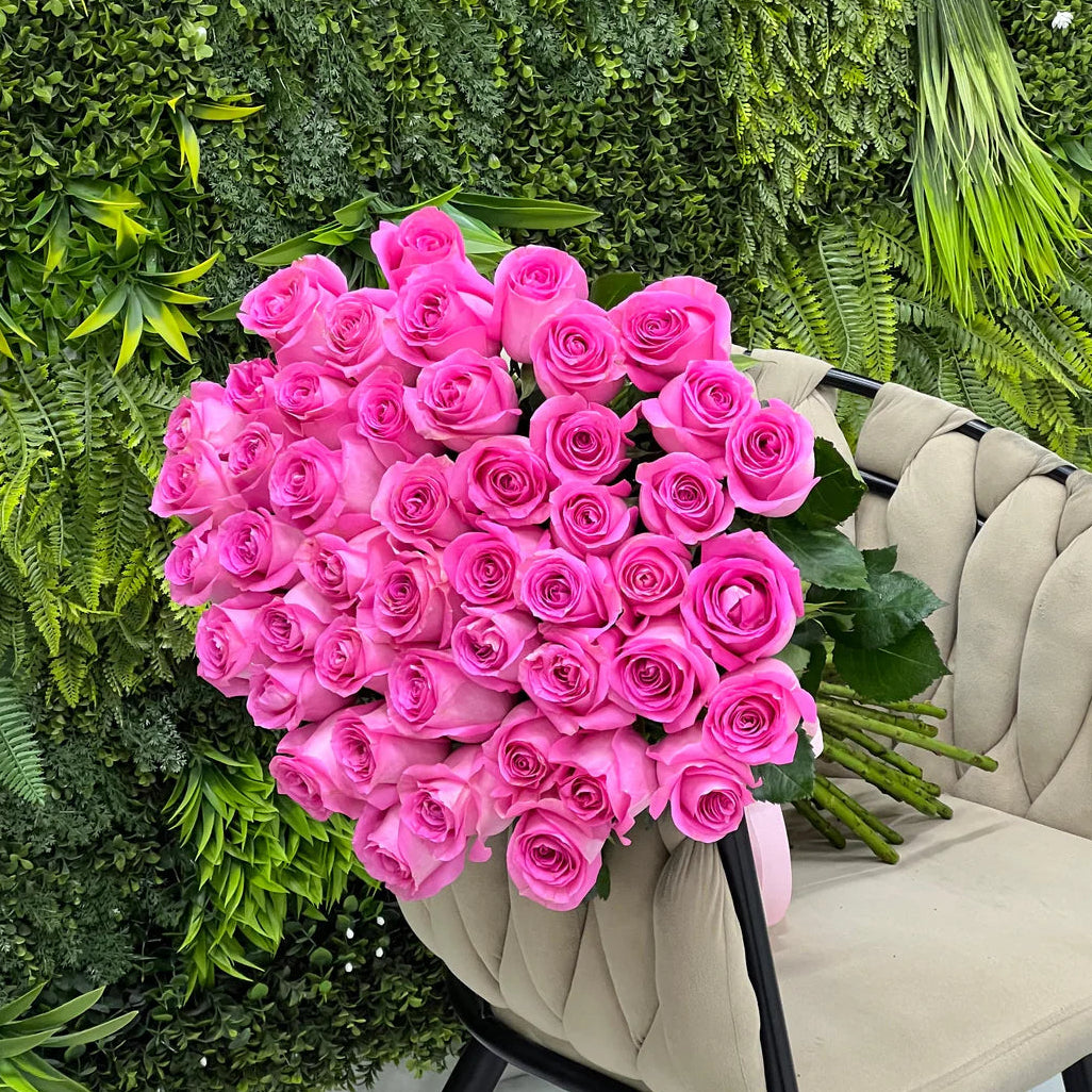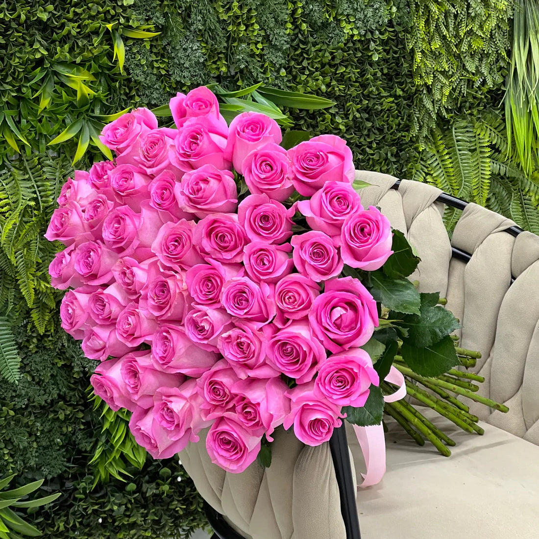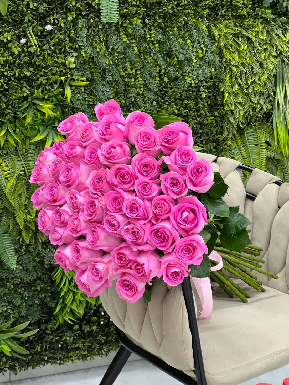 “A breathtaking display of elegance, this luxurious bunch of premium pink roses embodies sophistication and grace. Each long-stemmed bloom radiates beauty with its lush petals and soft blush hue, creating a statement of timeless romance and refined style. Perfect for grand gestures, celebrations, or simply indulging in the art of luxury florals.